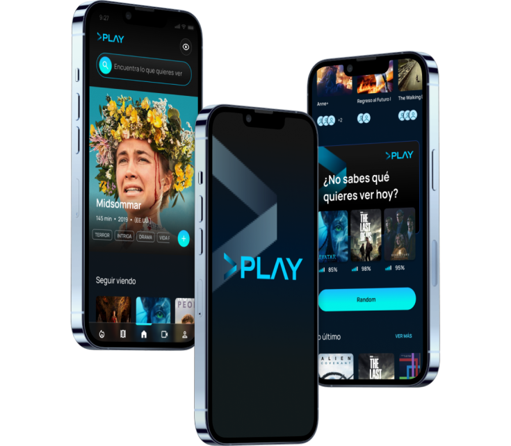 Play nace como proyecto personal. Esta aplicación pretender resolver la frustrante tarea de buscar en cada plataforma de streaming la película o serie que quieras ver, además, se podrá encontrar información relacionada con películas y series, como actores, directores, el tráiler, saber qué plataforma de streaming puedes encontrarlas, consultar valoraciones, aparte de poder crear, recomendar y compartir listas con tus amigos.